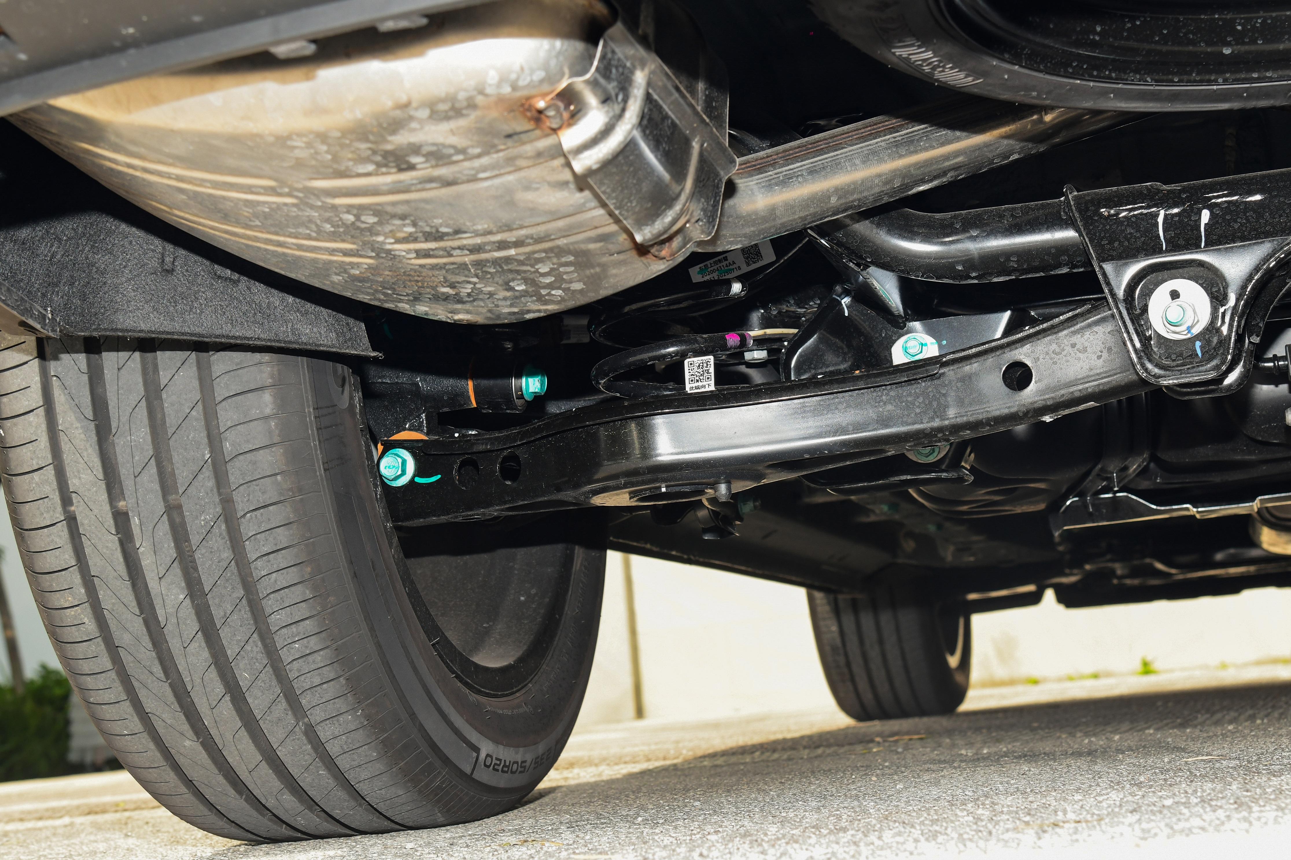 平时在市区开车,起步的时候车身不会猛地抬头,刹车的时候也不会生硬点头,坐在车里感觉很平稳。过弯的时候,身体的倾斜感被控制得很好,不会觉得晃得厉害,孩子们坐在后面也不会吵着说晕。就算经过路面的坑洼或者减速带,颠簸感也被过滤得很柔和,不会有 “咯噔咯噔” 的感觉,爸妈坐在车里也说舒服,不像之前坐有些车,过个减速带能颠得人难受。这款车的底盘还有很多细节优化,比如有 26 处减震衬套,其中不少是 80mm 的大直径衬套,能进一步减少震动。前后悬架行程分别达到 200mm 和 193mm,这个尺寸在同级别车型里表现很突出,就算走点烂路,也不用担心刮到底盘,有次去露营,走了段不太好的路,也没出现刮底盘的情况,放心多了。