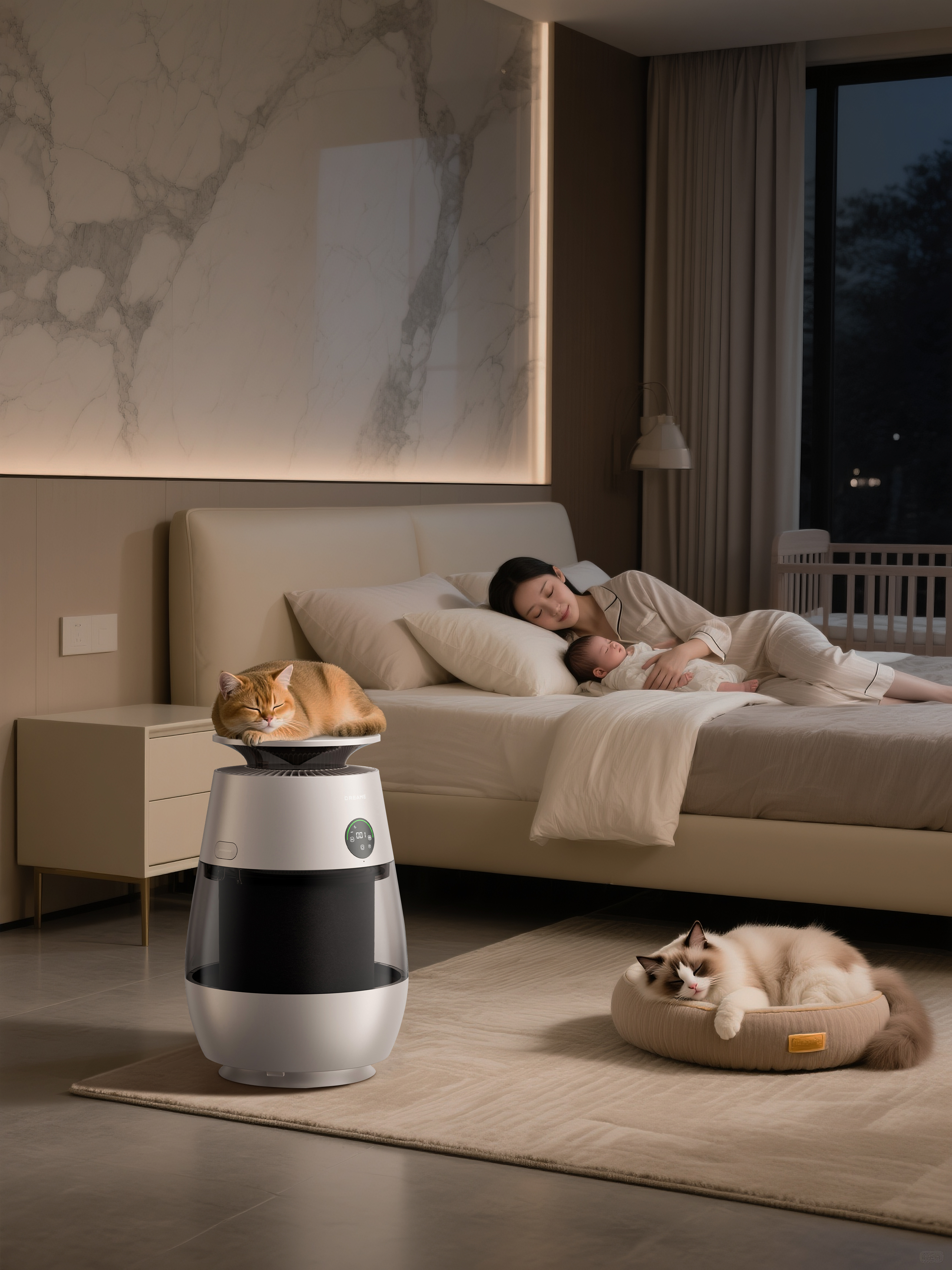 追觅AP10的核心突破在于其构建了一套覆盖“毛发—异味—过敏原—细菌”的全链路净化方案。其搭载的360°高负压回风系统,可实现430m³/h的颗粒物CADR值,能够在7分钟内完成30m²卧室的空气循环。实测数据显示,其对宠物浮毛的吸附率高达99.9%,有效解决了宠物奔跑后毛发满屋飞扬的痛点。