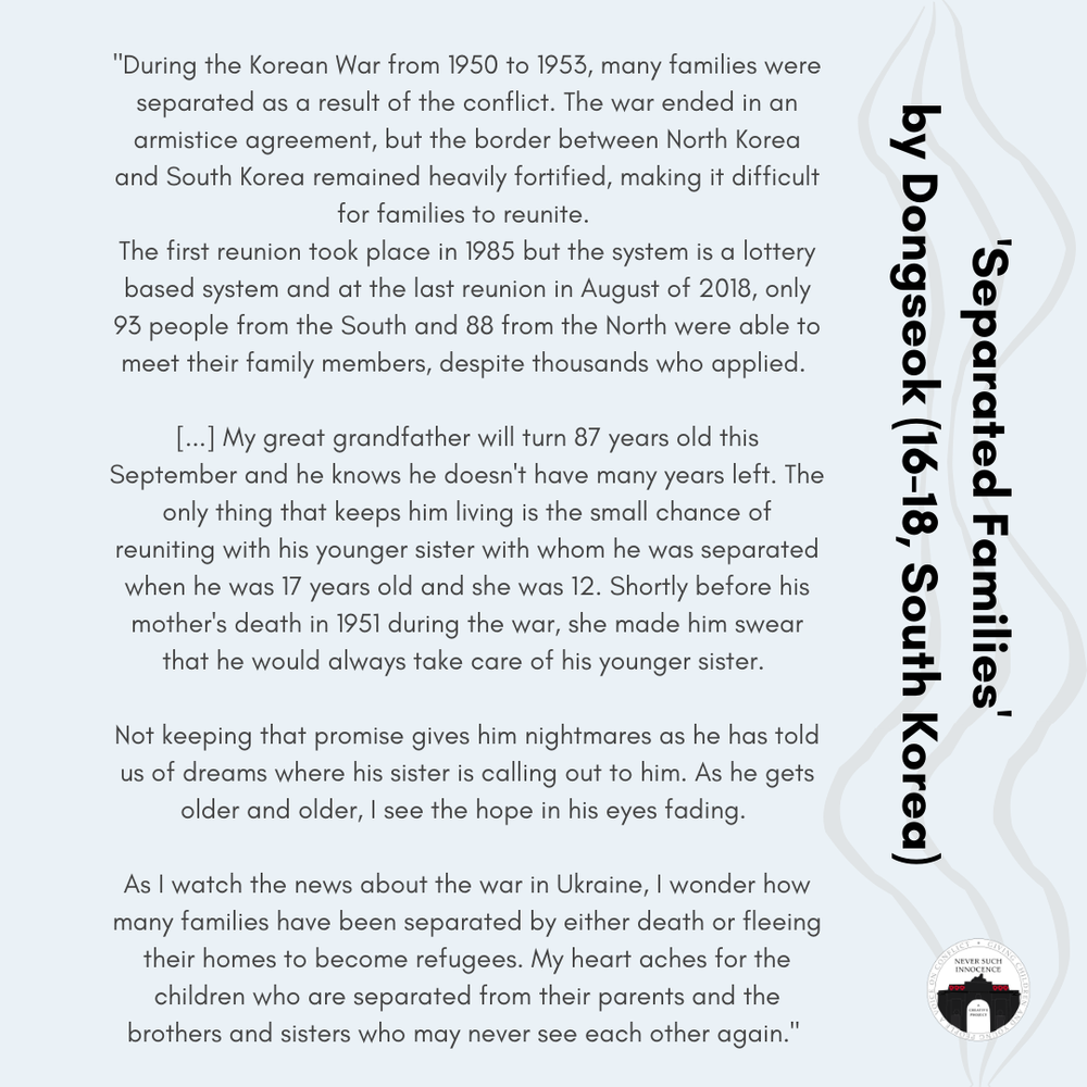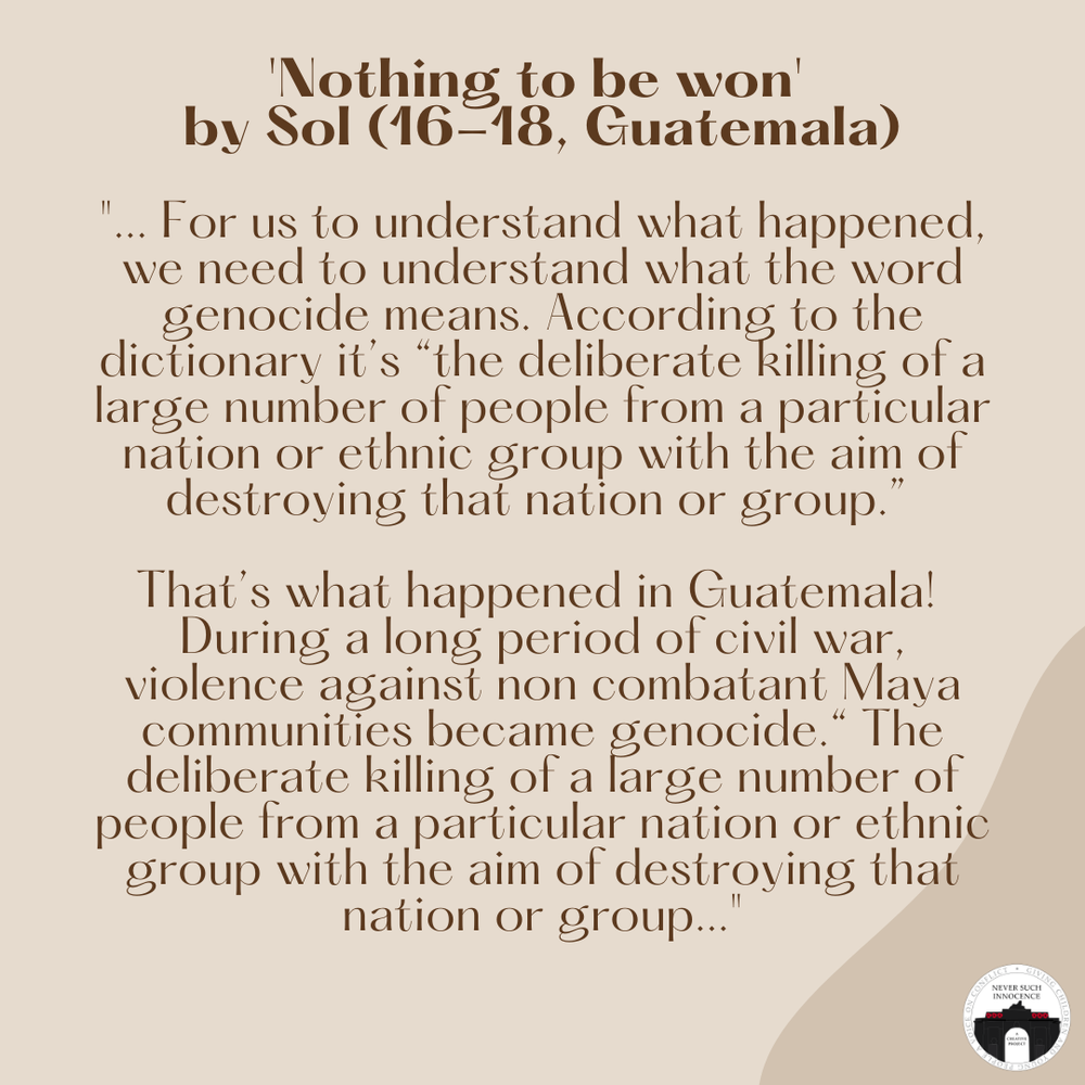 【Never Such Innocence】慈善机构旨在让世界各地的儿童和年轻人表达对冲突的声音。我们提供机会,通过诗歌,艺术,演讲和歌曲来反思整个历史以及当今的冲突。