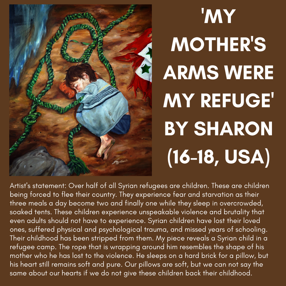 英国Never Such Innocence 慈善机构组织的国际年度跨学科竞赛使年轻人能够通过创意艺术表达对冲突的发言权。比赛对来自世界任何国家的9-18岁的年轻人开放。邀请他们创作诗歌、艺术和歌曲,以反映他们对历史或当前,在国际范围内,或在其当地社区或更广泛的社会中有强烈感受的事物。