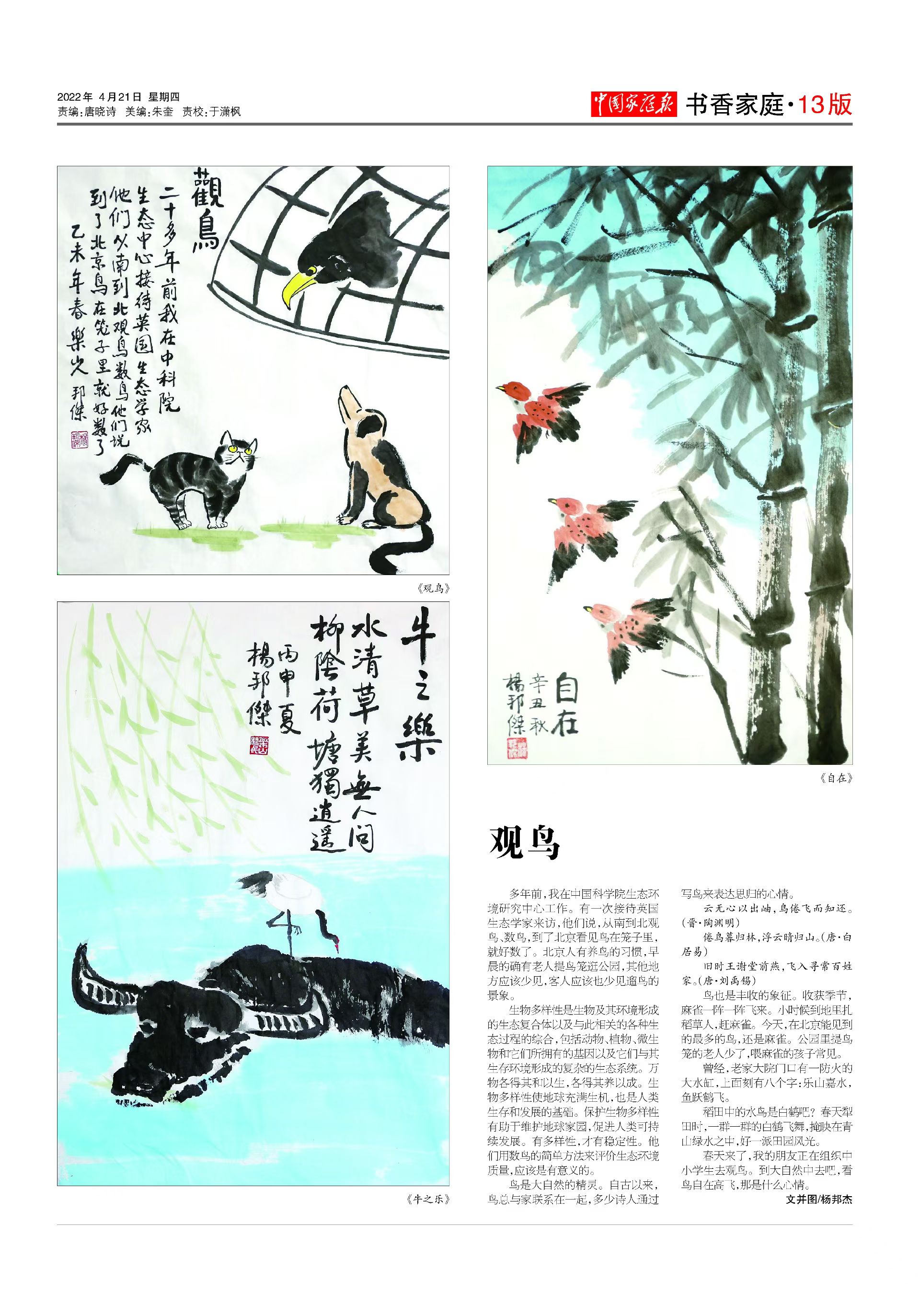 鸟是大自然的精灵。自古以来,鸟总与家联系在一起,多少诗人通过 写鸟来表达思归的心情。