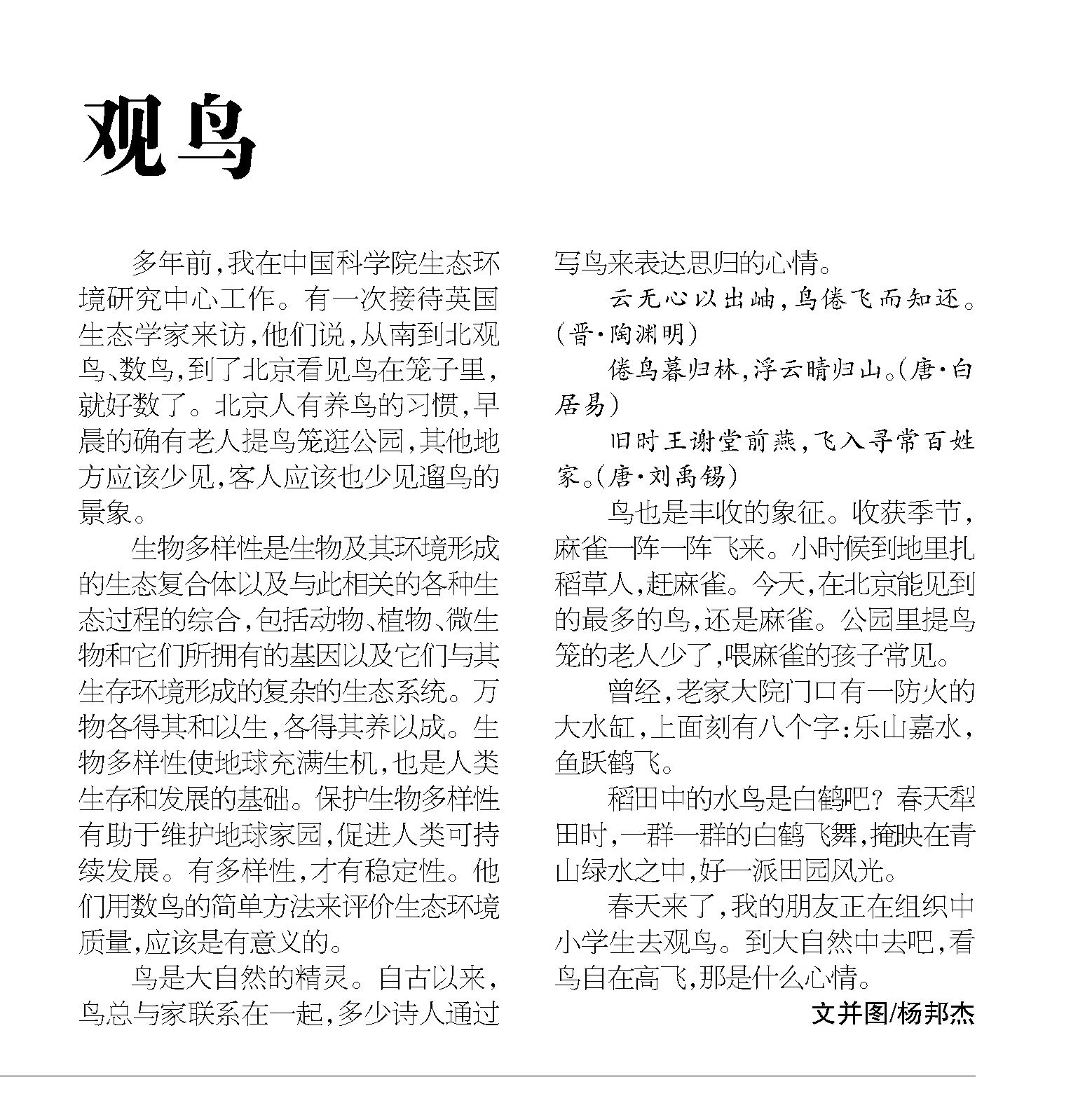 多年前,我在中国科学院生态环境研究中心工作。有一次接待英国生态学家来访,他们说,从南到北观 鸟、数鸟,到了北京看见鸟在笼子里,就好数了。