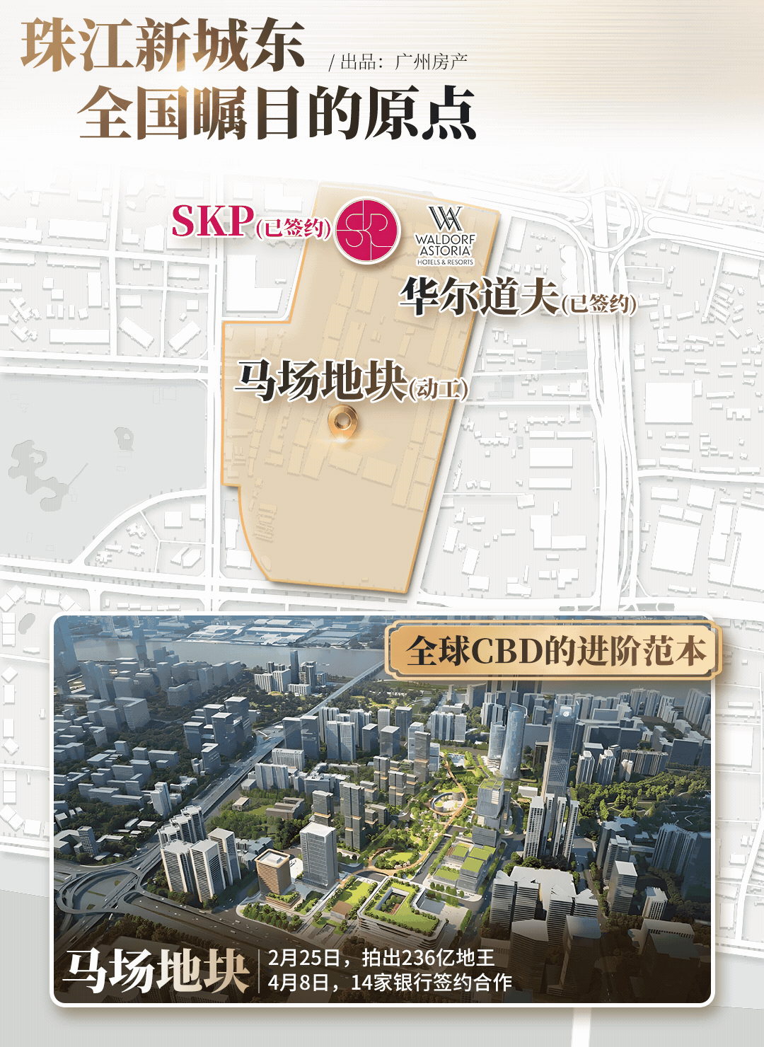 最受关注的,当属珠江新城东——继拍出236亿地王后,SKP华南首店签约,华尔道夫也签约了。