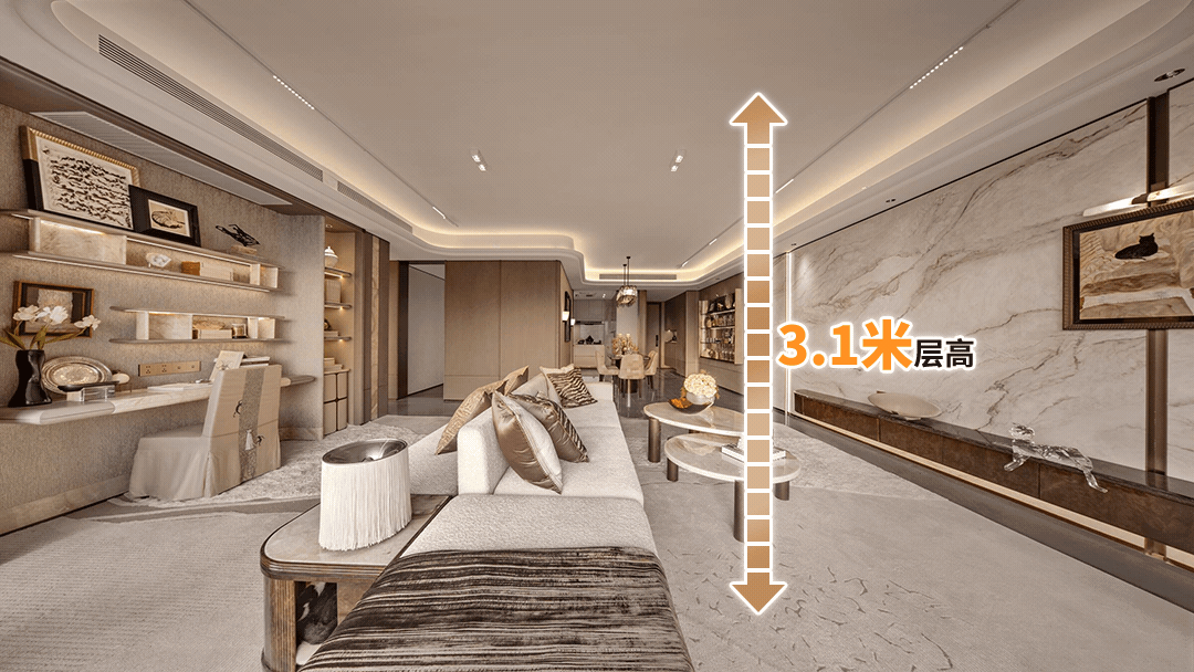 3.1米的奢阔层高,比普通住宅高出10公分。在珠江新城,这样的层高通常只出现在200㎡以上的大平层。