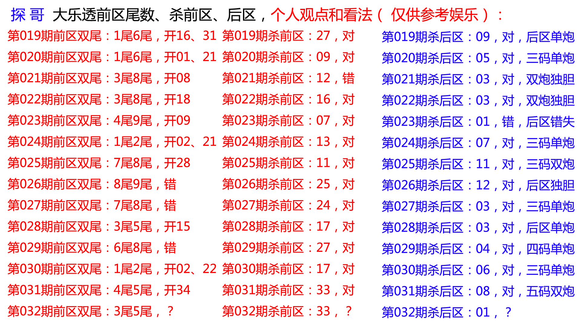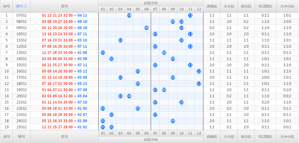 第032期后区胆尾(新数据):123尾,345尾,开?;