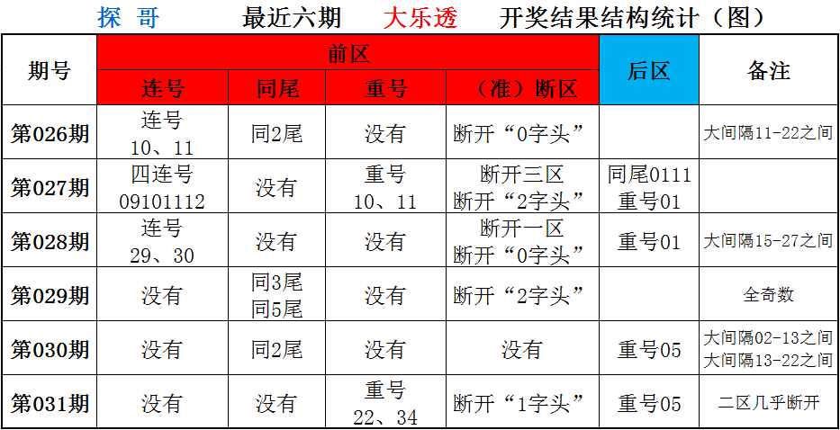 开奖号码结构:前区没有连号,没有同尾,重号22、34,断开“1字头”。后区连续三期重号05 。