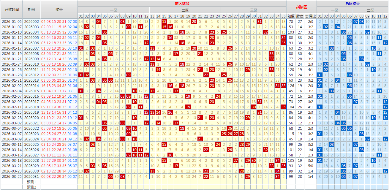 一、上期大乐透第031期开奖结果(历史数据演示):