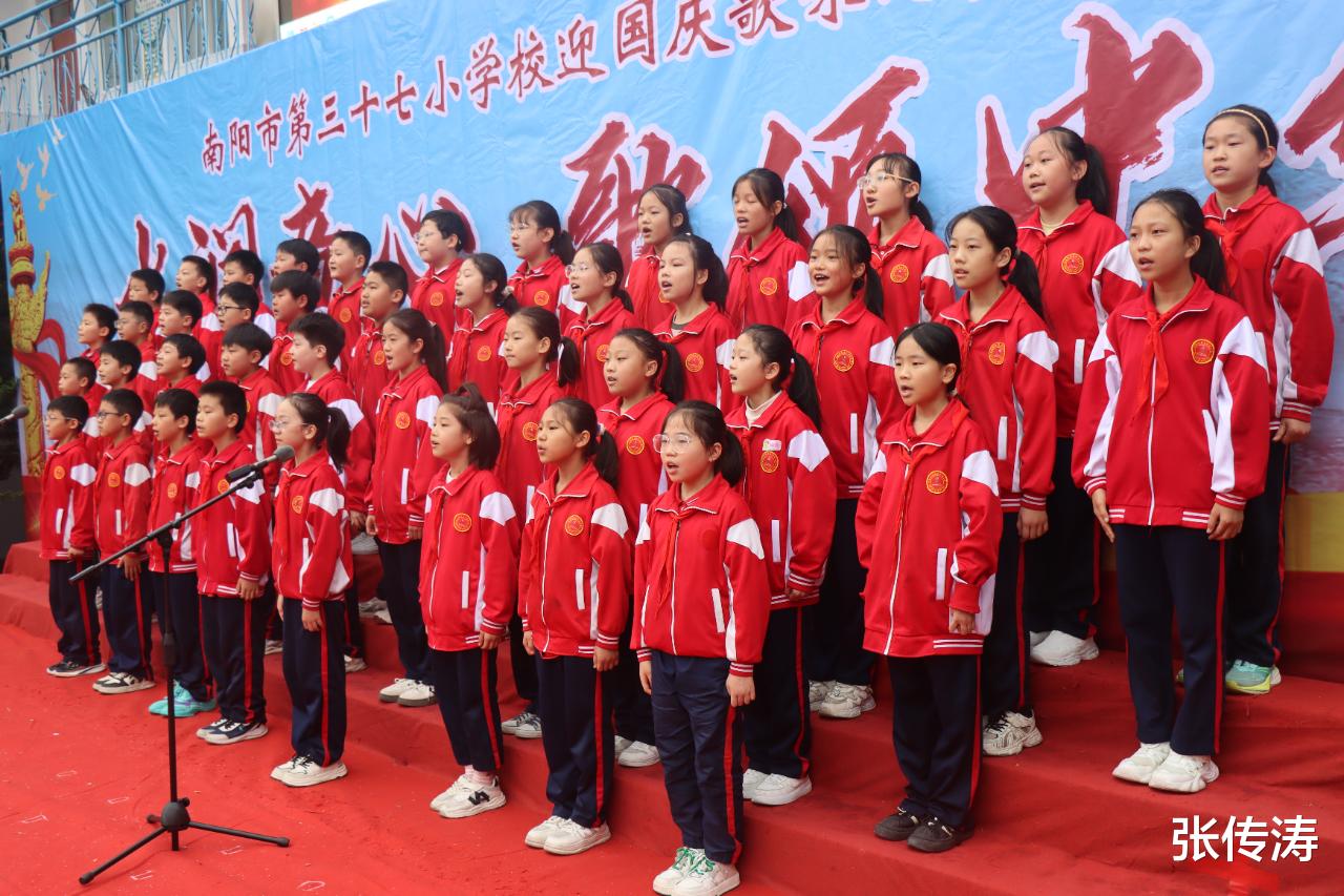 本网南阳9月30日讯(《人民视点》记者 张传涛 通讯员 陈语嫣)为迎接新中国成立76周年,向祖国母亲献礼。9月30日上午,河南省南阳市城乡一体化示范区37小学以“水润童心、歌颂中华”为主题,举办了一场声势浩大的“迎国庆”歌咏比赛。