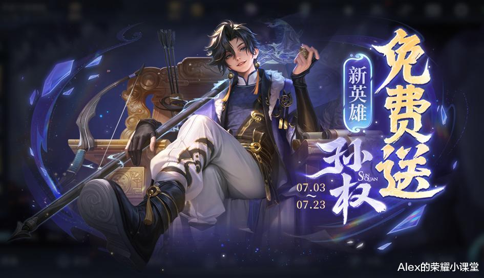 活动时间7月3日-7月23日,完成英雄登场和练习场任务免费获取新英雄孙权,也可以消耗58英雄碎片或13888金币兑换。