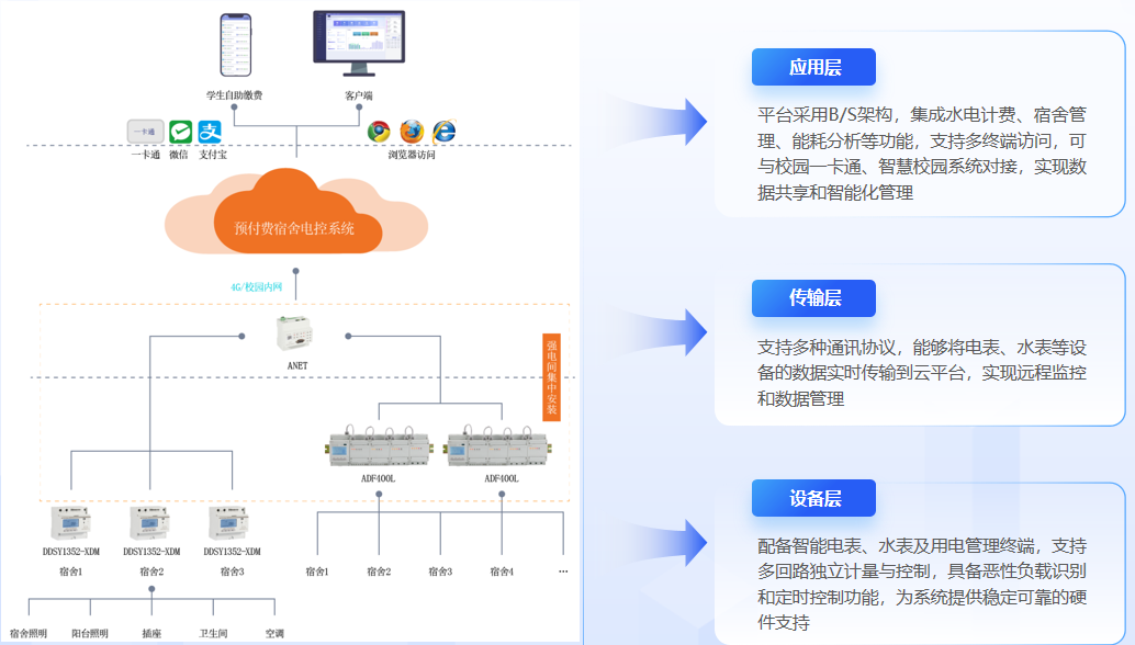 5、数据支撑不足,决策缺乏依据:难以有效统计分析,管理者缺乏对整个校园能源管理状况的了解,学校管理层难以做出科学决策。