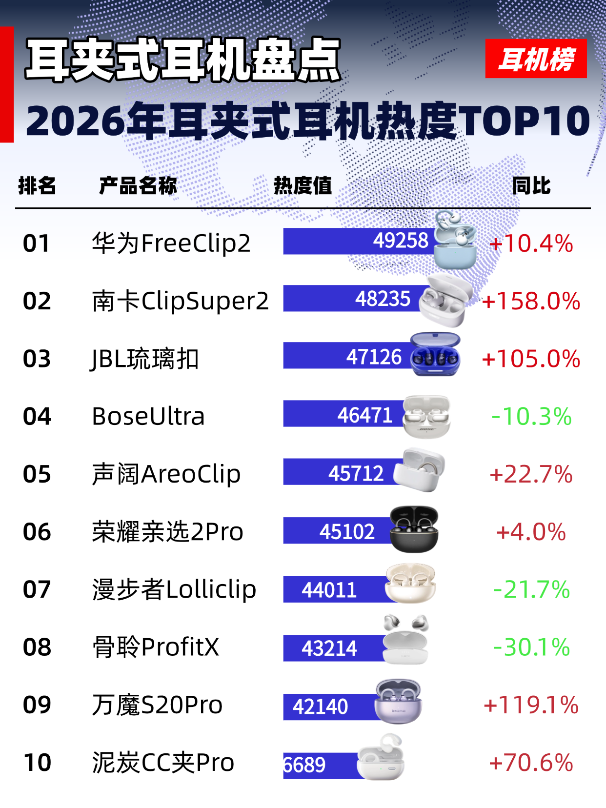 耳夹式耳机凭借不入耳、佩戴舒适、运动不易脱落的特点,越来越受到大家的喜爱。可面对众多品牌,很多人不知道该如何选择,本文综合了各品牌的市场口碑,精心整理出十大公认最好的夹耳式耳机推荐,涵盖不同价位区间,让普通消费者也能清晰对比,快速挑选到适合自己的优质耳机。