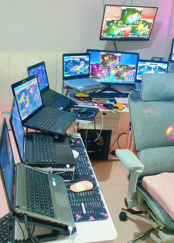 在《逆水寒》的虚拟世界里,像“东北小辣椒”这样的搬砖者不在少数。一对90后夫妻采用“人歇号不歇”的策略,运营36个游戏账号日夜忙碌,高峰时期单日收入可达1796元,还能兼顾家庭陪伴孩子。