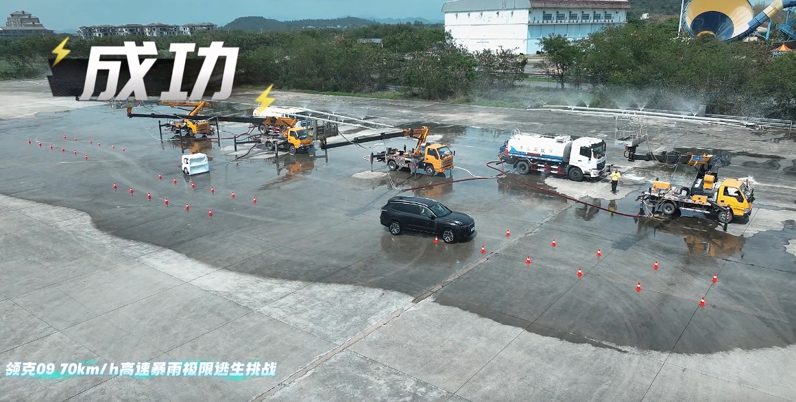 同时最近我还刷到了这样一个测试,暴雨麋鹿测试。在视频中能看到,领克09在暴雨地面非常湿滑的情况下,依然能够以70km/h的时速通过麋鹿测试,完成紧急避障,车身姿态依然很稳定。