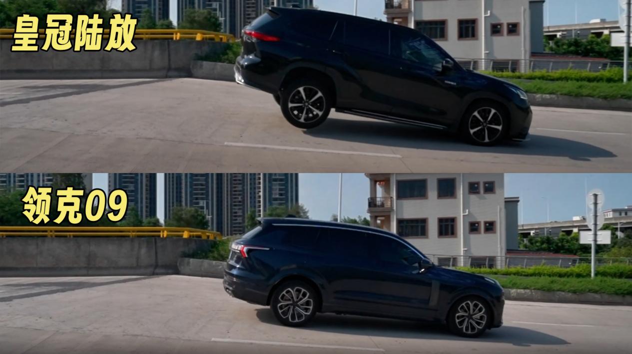 没错,两台车在以相近时速飞坡时,皇冠陆放由于过软的避震,导致前避震已经来到极限,而后轮也出现了离地的情况。这种情况下但凡前方有一些突发情况,驾驶员根本没有操作的空间!而且在飞完坡以后,目测车辆也有两到三次多余的回弹。