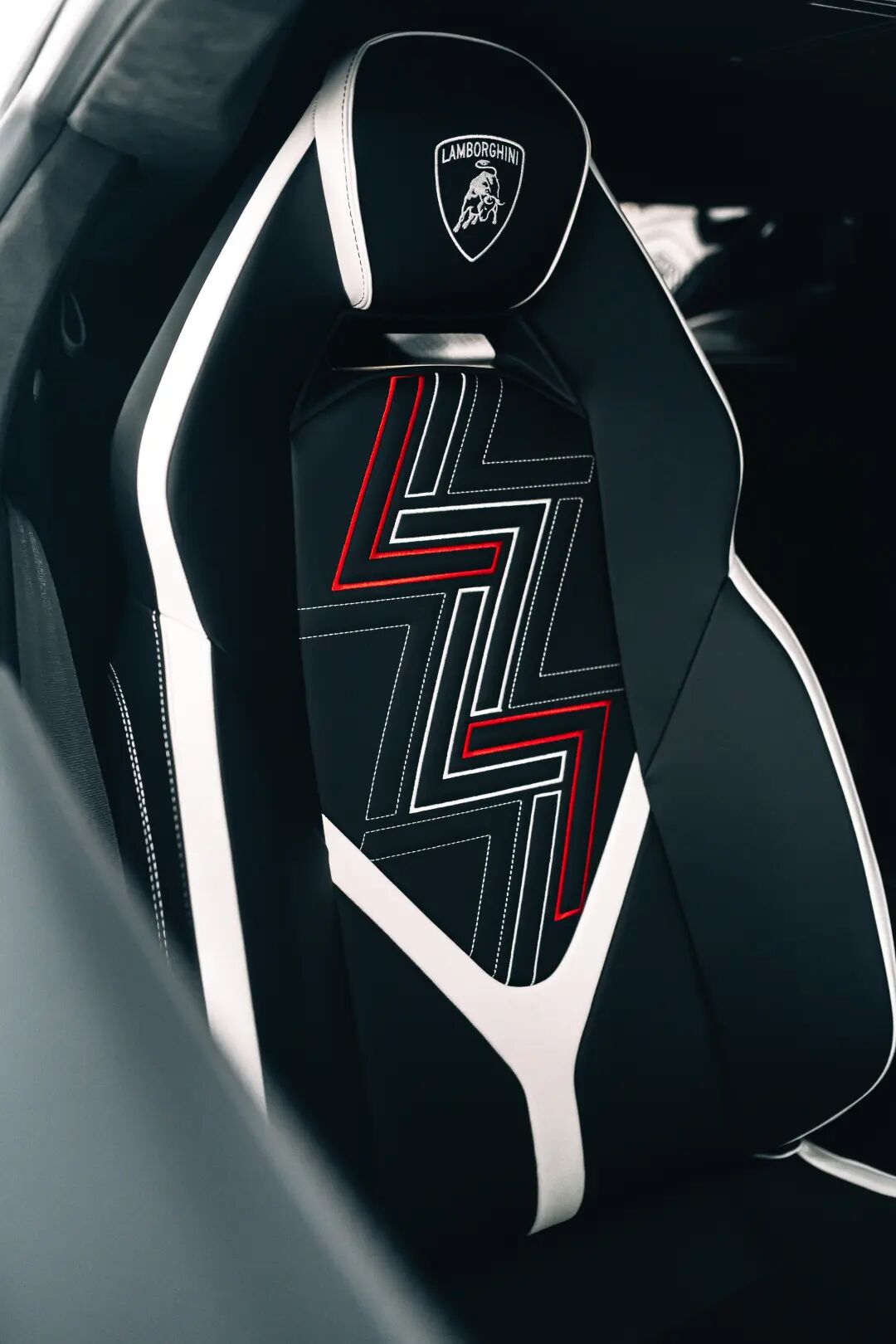 其外观展示了从Bianco Asopo(白色)到Rosso Khonsu(红色)的纵向渐变涂装。这是兰博基尼车型首次使用纵向褪色效果,标志着外观设计的重大创新。这种色彩渐变形成醒目视觉陈述,灵感源自日本文化,其中白色和红色象征庆祝与吉祥。