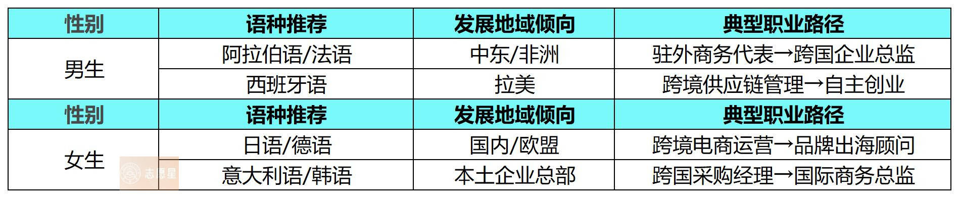 在"在问志愿星"AI搜索框输入"希望成为小语种+外贸复合型人才",系统即刻生成定制化方案: