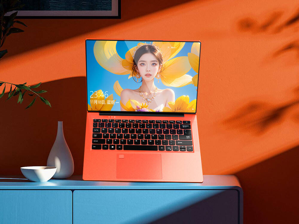 DERE戴睿P14的最大亮点无疑是其大胆的爱马仕橙配色,这一设计不仅打破了传统笔记本黑白灰的单调格局,更为产品增添了时尚与活力的气息。此外,其轻薄便携的设计也备受好评,机身重量仅1.3kg,厚度仅为10mm,轻松掌握,随身携带无负担。