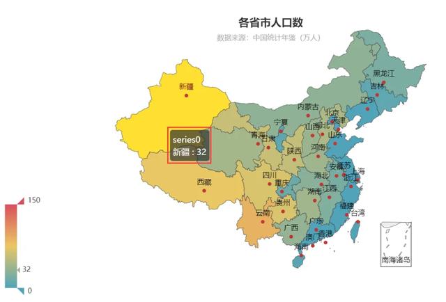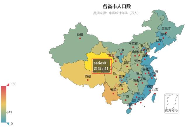 import pandas as pdfrom pyecharts import options as optsfrom pyecharts.charts import Mapimport operator as opimport timedf_tb = pd.read_excel('./data.xlsx')locations = [location for location in df_tb['地区']]values = [value for value in df_tb['2016年']]datas = list(zip(locations, values))print(datas)for data in datas: print(data) # print(type(data))print(type(datas))# print("==============================")# def func(m):# a = []# for i in range(0, 35):# b = (df_tb['地区'][i], df_tb[m][i])# a.append(b)# return a# datas2 = func('2016年')# for data in datas2:# print(data)# print(type(data))# print(datas2)# print(type(datas2))map = ( Map(). add('gdp', [location for location in datas], 'china') # .add('gdp', [list(location) for location in datas], 'china') .set_global_opts( title_opts=opts.TitleOpts(title='各省贫困县分布图'), visualmap_opts=opts.VisualMapOpts(max_=150) ) )map.render('各省贫困县分布图.html')# print(op.eq(datas, func('2016年')))下图是datas生成的html动图,是有颜色的,而且有数据显示,如下图所示。