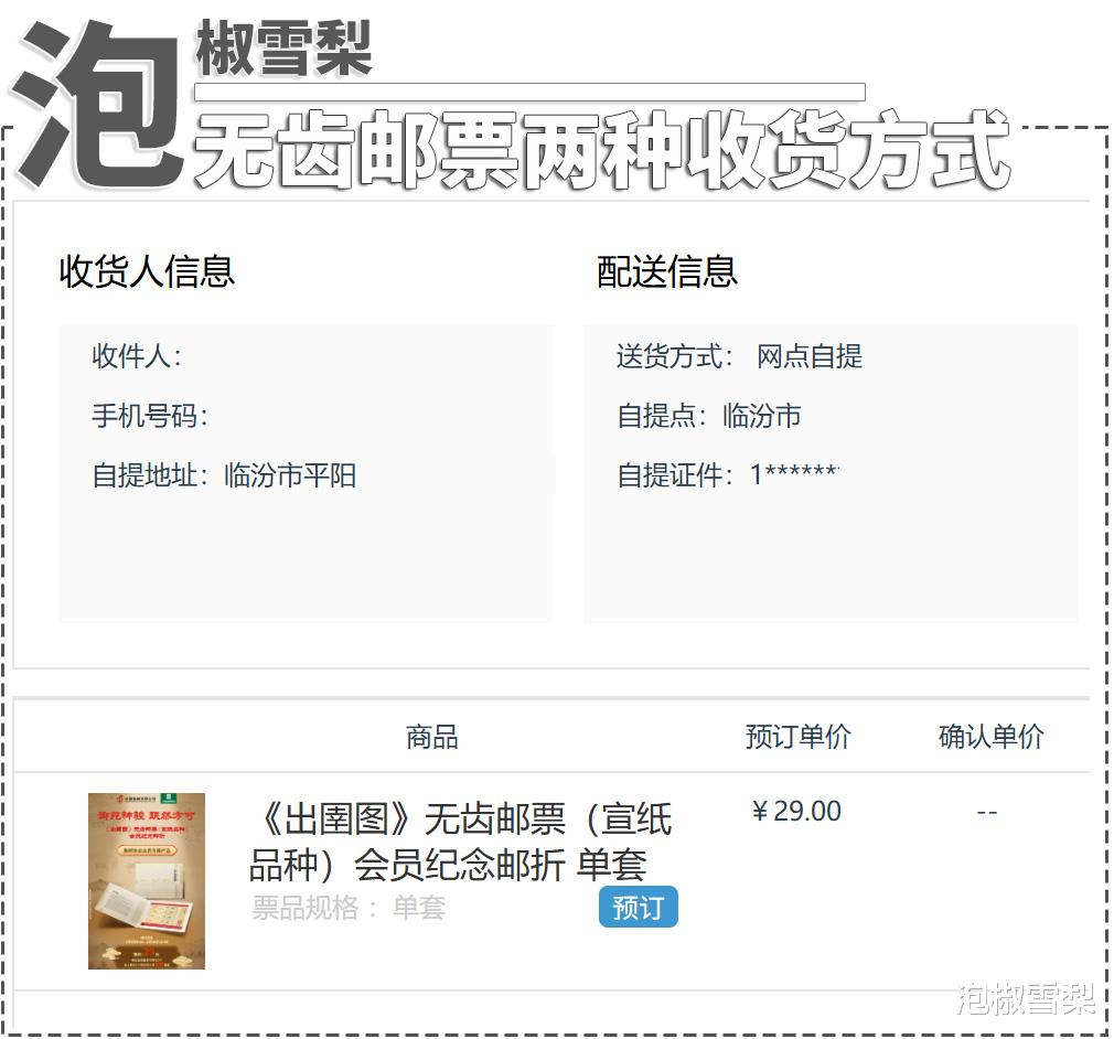 预订时大家应该发现有两种提货方式,一个就是在当地邮局自提,另一个就是由总公司邮寄到家,两种方式都会在3月20日当日开始,所以理论上寄递没有自提拿到邮票的速度快,但考虑到往年会员邮票不能第一时间到货,所以究竟哪种方式能够先拿到,一句话概括,就是离北京越近的地方,和较大城市优先。