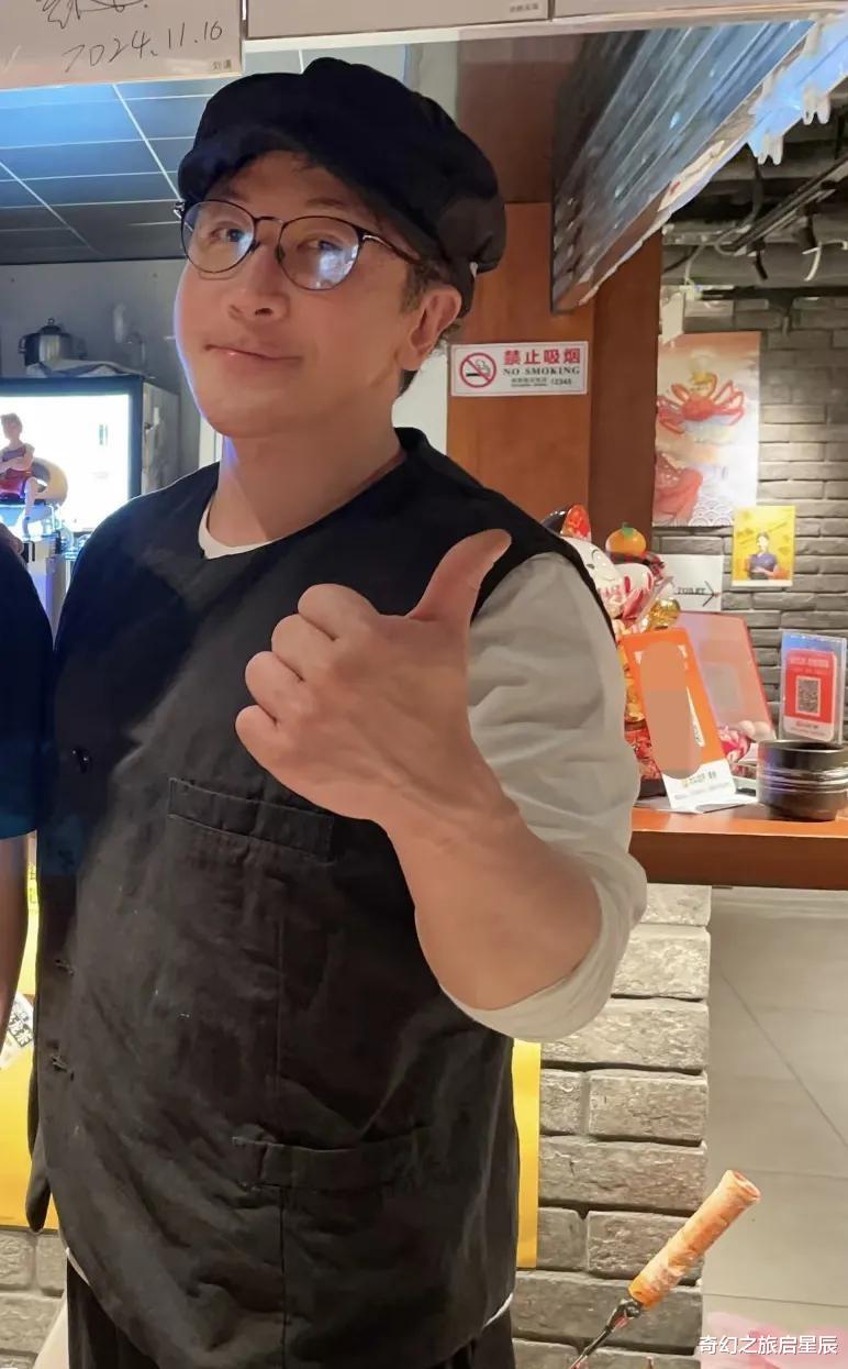 那天,阳光洒进店里,空气中弥漫着烧肉的诱人香气。我正专心致志地享用着美味,突然,我的目光被一个熟悉的身影吸引住了。他独自坐在角落里,戴着贝雷帽,黑框眼镜遮住了大半张脸,穿着朴素:白色T恤、黑色夹克、黑色休闲裤。 乍一看,很难将他与舞台上那个光彩照人的魔术大师联系起来。 更让我意外的是,他看起来比印象中要壮实许多,手臂上的肌肉线条清晰可见,手上甚至能看到明显的青筋。 这与我记忆中那个身形纤细的刘谦,判若两人。