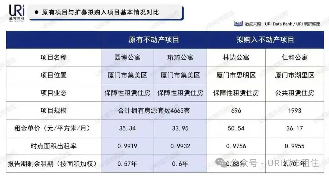 经对比,URI租住认为,本次扩募拟购入资产与原有资产在区位、租金、租约期限上均形成差异化配置,在扩大基金规模的同时优化了资产组合的结构,有助于提升整体抗风险能力和收益稳定性。