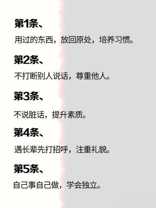 4. 管好文明礼仪:见人主动问好、不打断他人说话、不随地乱扔垃圾、懂得尊重长辈,品德教养,就藏在日常礼仪里。