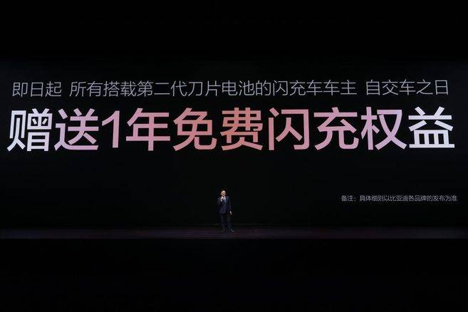 发布会现场,王传福还宣布:所有搭载第二代刀片电池的闪充车车主,均享有重磅“闪充权益”,自交车之日起,在全国闪充站可享受1年的免费闪充权益,让闪充体验更畅快。并且,在闪充免费期结束后,也会同行业保持一致,不会额外收费。