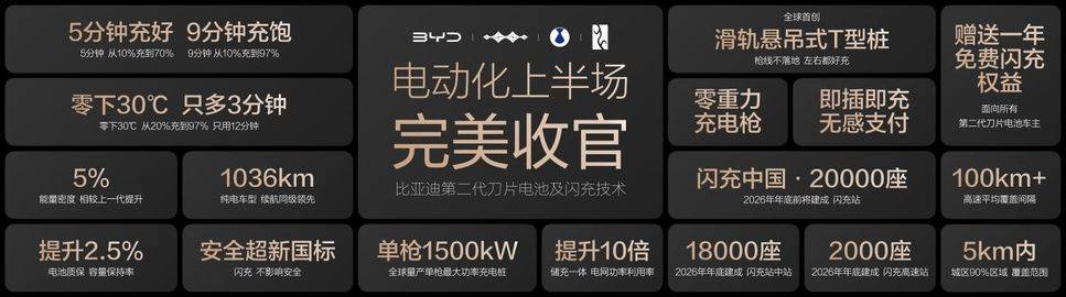 第二代刀片电池及闪充技术的发布,与“闪充中国”战略的落地,标志着 “充电慢”、“低温充电难”这两大世界性难题已被攻克,新能源汽车电动化的“上半场”至此完美收官。