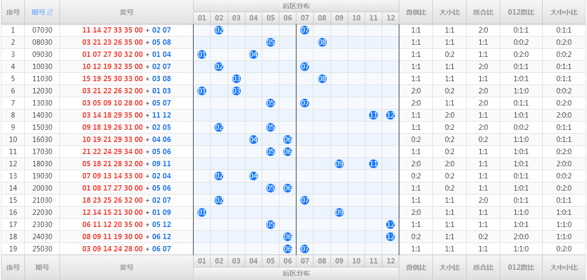 八、历史同期,后区开奖结果和走势图: