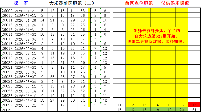 自大乐透第029期开始, 胆组一、胆组二更换新数据,希各知照。