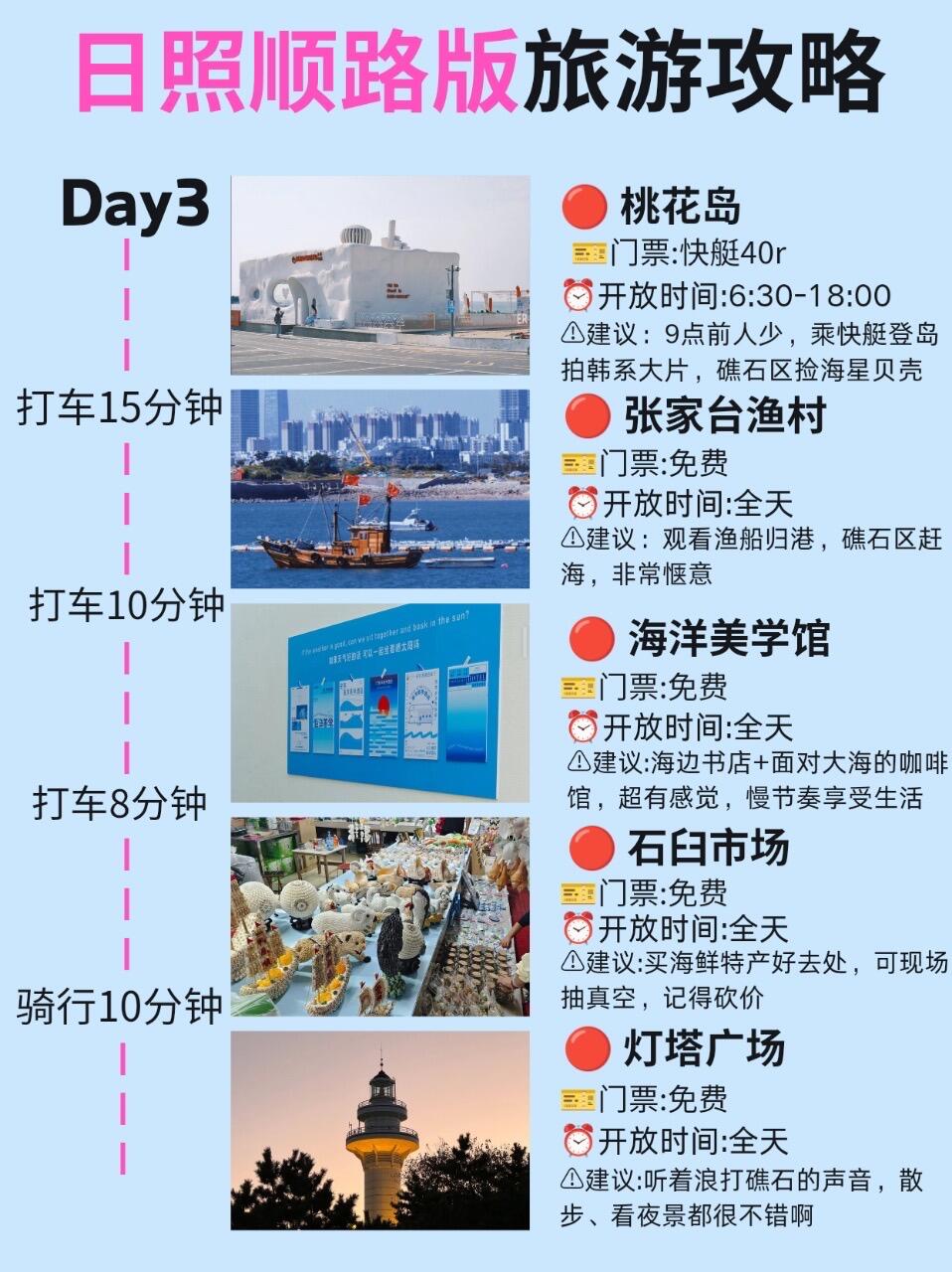 3️⃣Day3:桃花岛—张家台渔村—海洋美学馆—石臼市场—灯塔广场