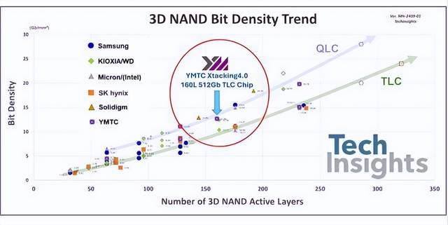 但据媒体的消息,目前长存使用国产应链,也实现了160层的NAND闪存产品,并且从存储密度来看,达到了12.66 Gb/mm2,不输三星、美光等国际大厂。