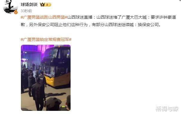 比赛最后30秒,发生了决定性的一幕。山西队张宁突破上篮,许钟豪在防守中挥肘击中了张宁,裁判果断判罚许钟豪违体犯规,山西队两罚全中。然而,这仅仅是争议的开始。赛后,许钟豪竟然还对山西队球迷做出了挑衅性的举动,彻底激怒了现场球迷。比赛结束后,大量球迷围堵广厦队的大巴,表达他们的愤怒。