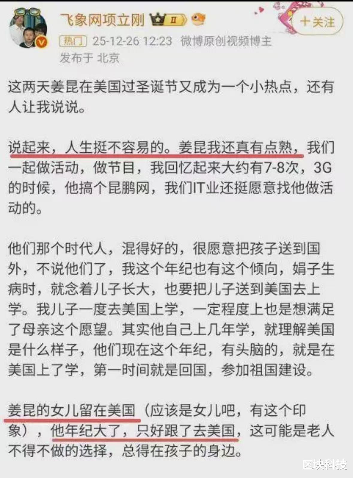 就在事件逐渐淡出公众视野之际,一个让人意外的声音再度将其拉回舆论中心——自称“通信产业观察家”的项立刚主动发声,表面以朋友身份为姜昆解释,却在言语间“不经意”透露姜昆女儿长期在美国生活的信息。这一行为,看似是“帮朋友说话”,实则无异于在公共平台上曝光他人家庭隐私,也令“朋友”二字在流量逻辑面前显得格外苍白。