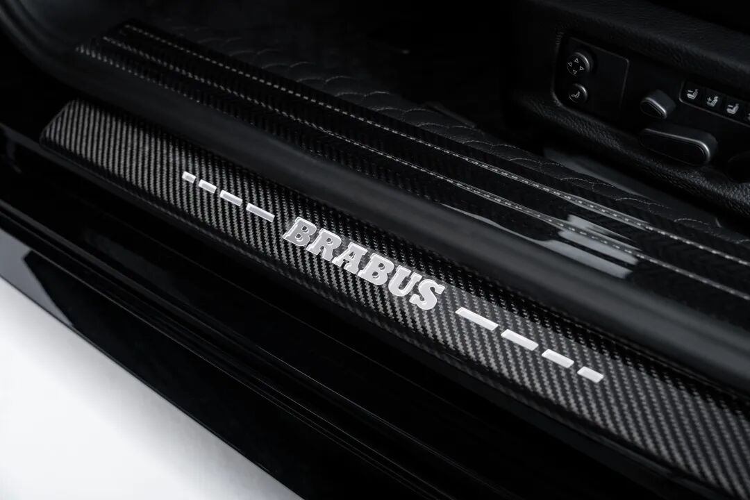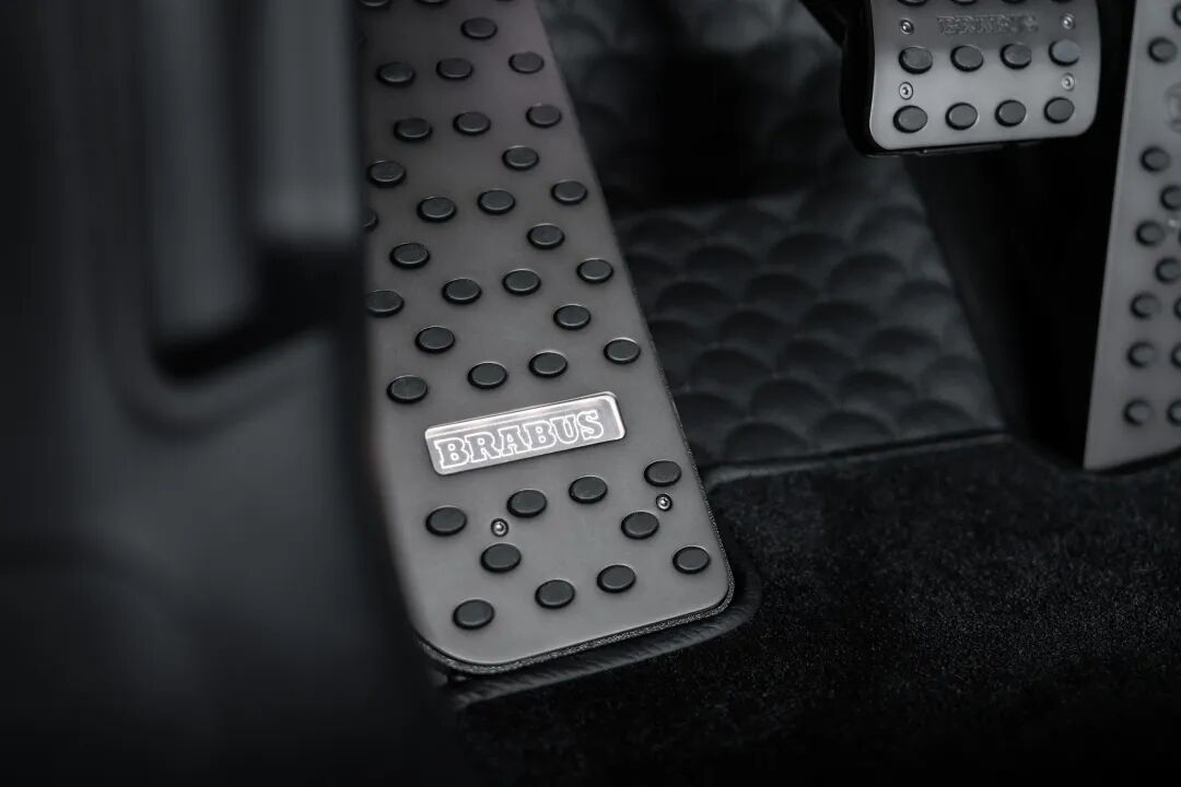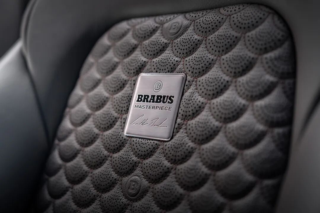 内饰采用了典型的巴博斯风格处理。菱形绗缝打孔皮革覆盖了座舱和后备箱的每一寸空间,并辅以压印的“B”徽章,以及在中控台、门板和门槛条上的碳纤维嵌件。
