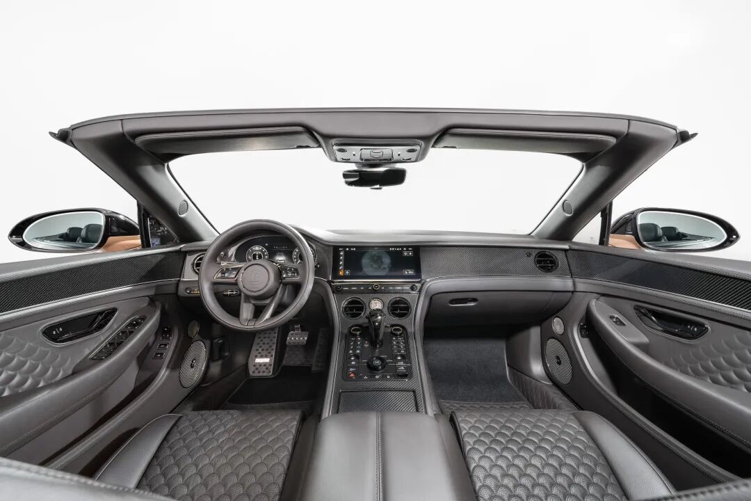 蜕变始于22英寸的黑色Monoblock ZM Platinum Edition锻造轮毂,兼顾强度与视觉冲击力。与之相配的是一套完整的碳纤维车身套件,包含带有新进气口造型的改型前唇、一个唇形后扰流板,以及一个容纳了四出尾管的后扩散器。这些尾管连接至带主动阀门的不锈钢排气系统,兼顾声浪与排气效率。