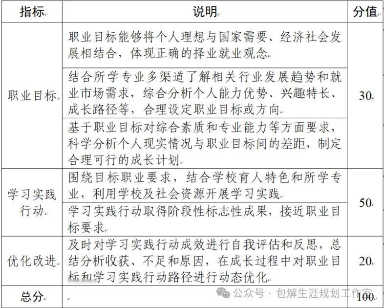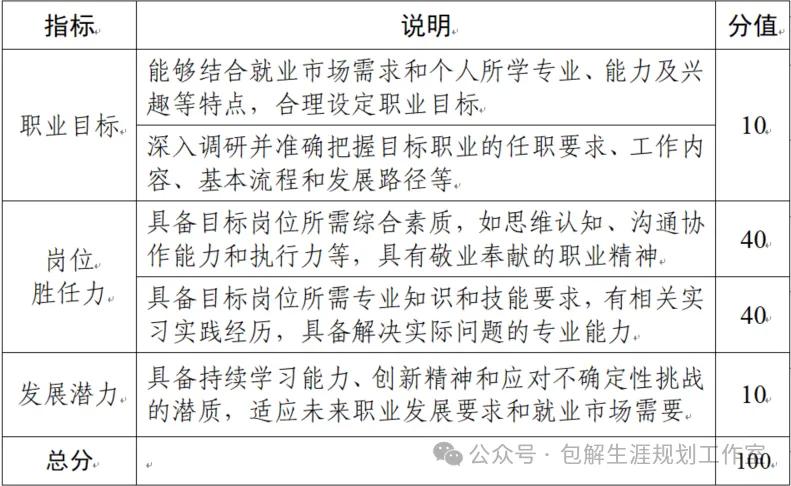 第三届全国大学生职业规划大赛成长赛道评审标准