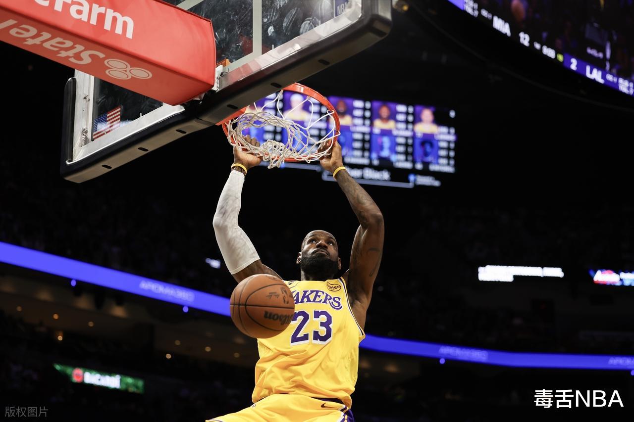 詹姆斯此役延续高效率,12中8,罚球5中3,得到19分15篮板10助攻,拿到三双数据,此役41岁80天老詹也打破了由自己创造的三双最年长球员的纪录!