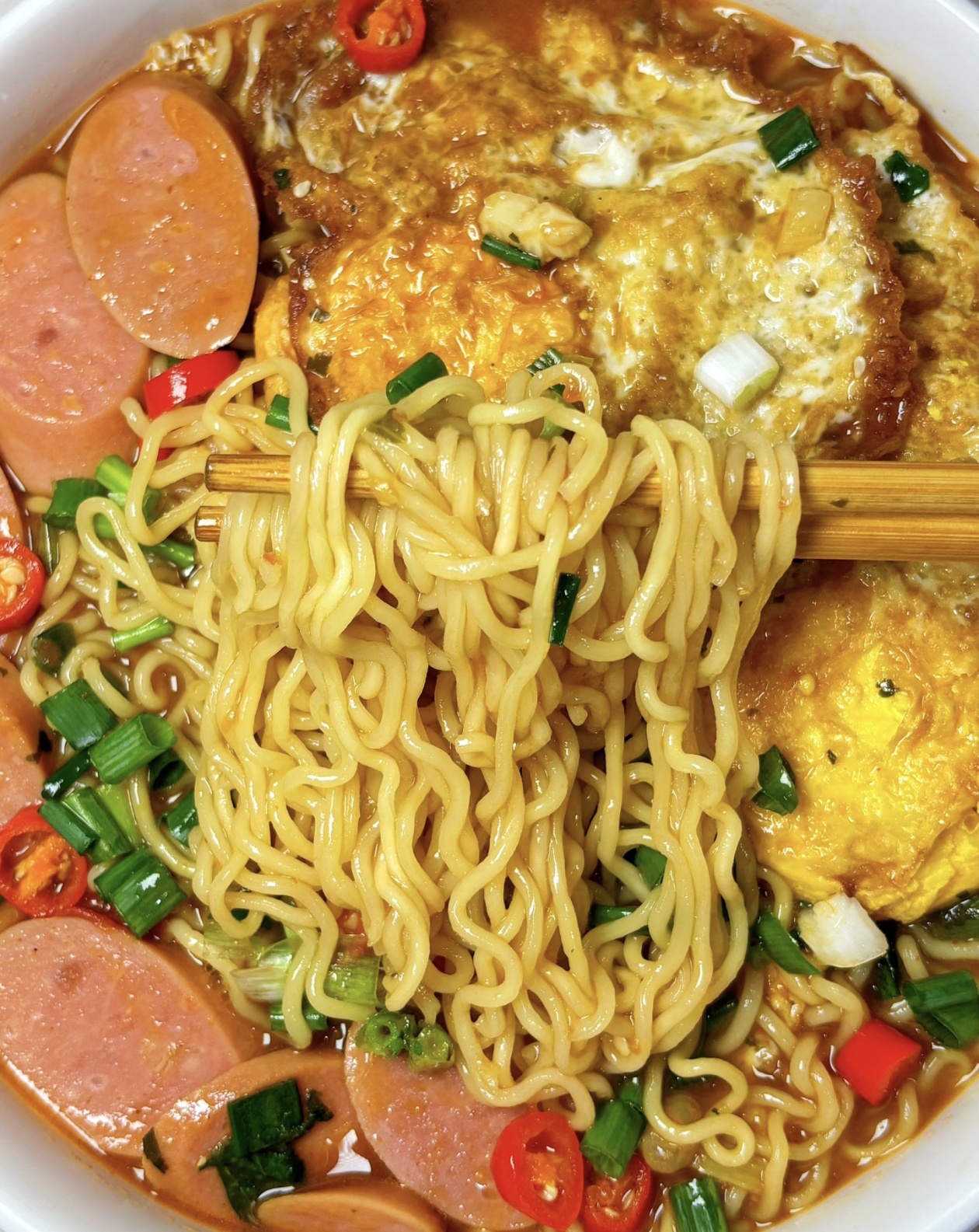 谁能拒绝深夜来一碗荷包蛋焖方便面啊?下班回家拖着疲惫的身体,打开冰箱翻出一包方便面,再配上两个鸡蛋、一根火腿肠,十分钟就能搞定一碗超美味的碳水炸弹,试问谁会不幸福啊?