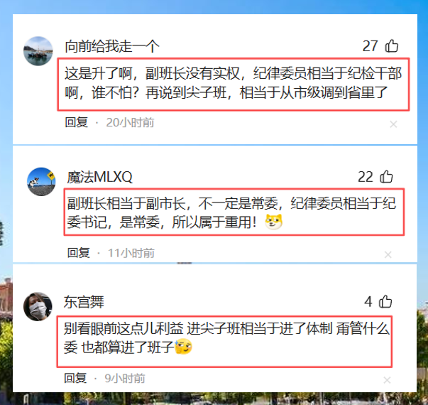 ID叫“徐主任”的网友一针见血:“明升实贬!尖子生没纪律问题,这相当于架空你弟!”ID叫“魔法MLXQ”的更是老江湖:“副班长是副市长,纪律委员是纪委书记,进常委了,重用!”还有人直接上价值:“进尖子班相当于进了体制,不用管什么委,相当于进了班子”