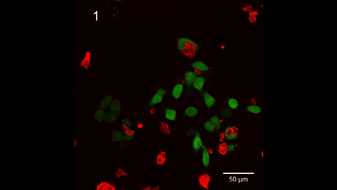 ▲ 红色vNKT细胞将绿色B16肿瘤细胞被杀死