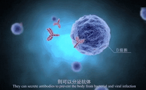 B细胞专门生产免疫球蛋白抗体的细胞,用来标记入侵的病毒或细菌,方便其他免疫细胞识别并消灭它们。