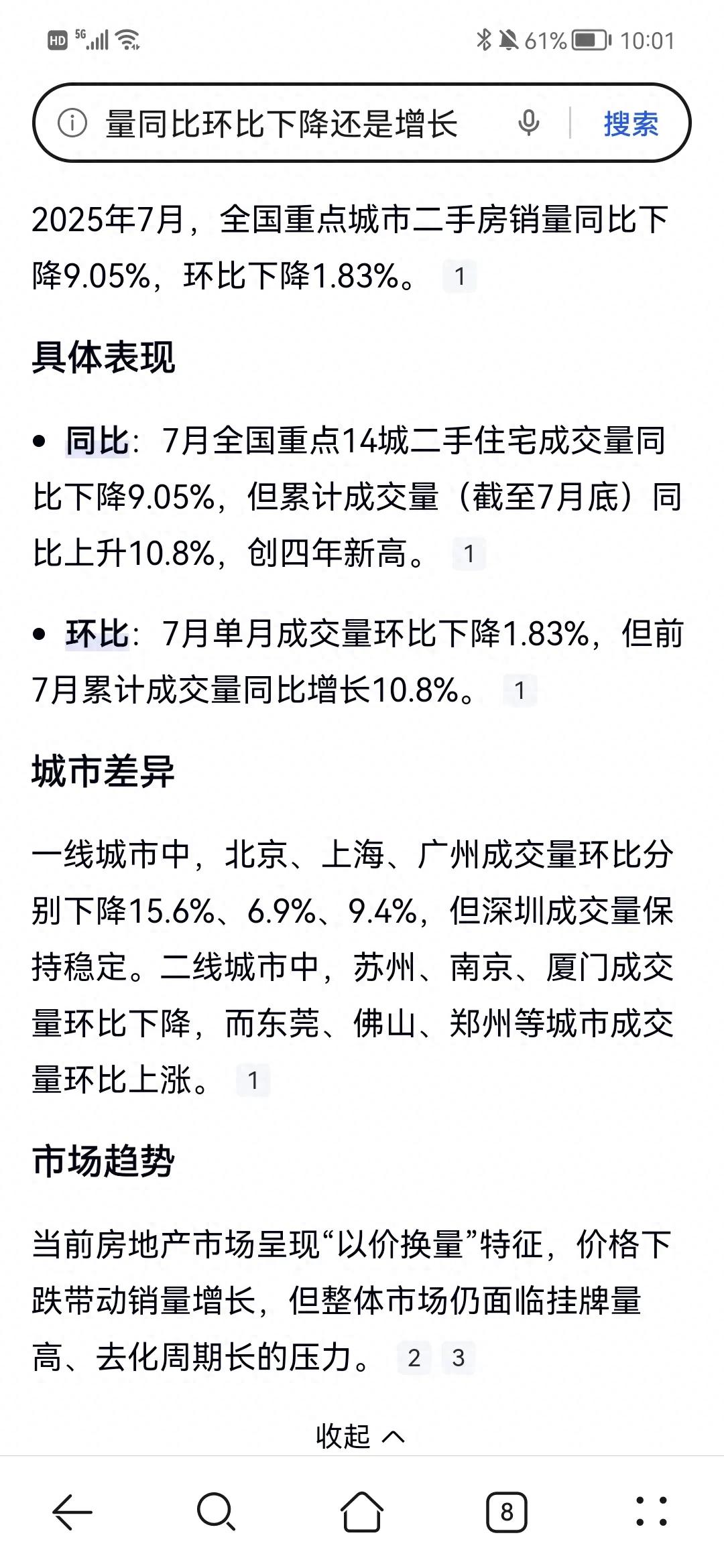 2025年7月份,二手房的销量同比环比均出现了下降的态势。当然,一手房的销量同比,环比也出现了下降的态势,但是降幅在收窄。