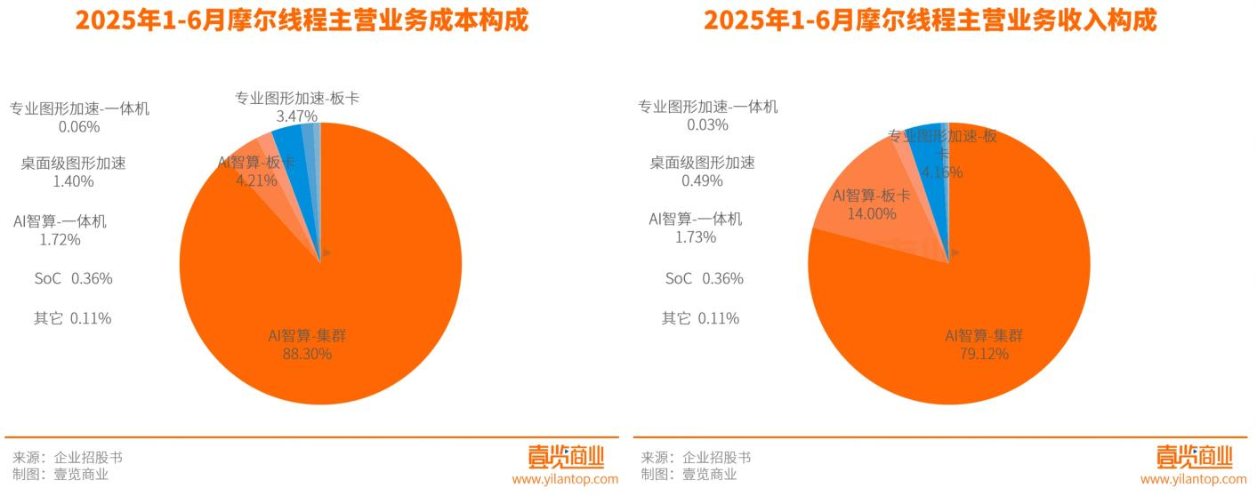 但从主营业务的收入结构与成本结构对照来看,强调全功能GPU能力的摩尔线程营收结构依然集中度较高。