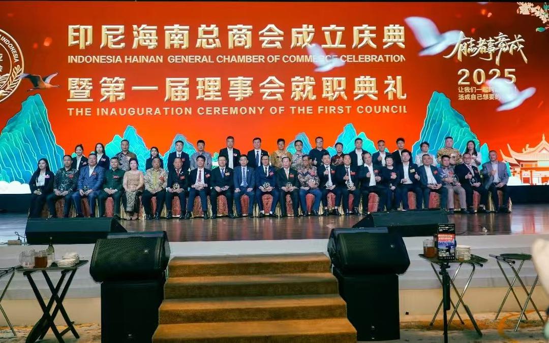 印尼共工新闻社讯(龚全元)2025年12月12日下午 3 时 30 分,印尼海南总商会成立庆典暨第一届理事会就职典礼,在雅加达金莎国际酒店宴会厅隆重举行庆典活动,在鸡尾酒会环节的亲切交流而欢快温馨的氛围中拉开序幕。来自海南省侨商代表团、旅印海南乡亲、工商界精英代表及中资在印尼各商会代表等嘉宾近700多人,大家济济一堂,共同见证这一具有纪念意义的盛事。大会现场庄重热烈,充分展现出海南乡亲同心同德、共襄盛举的精神风貌。