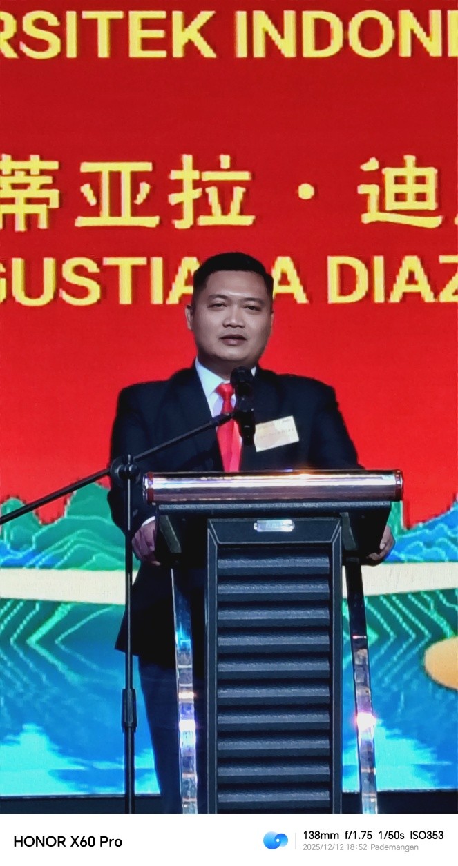 印尼建筑协会会长Gustiara Diaz贺辞。他强调,将秉持“团结、服务、创新、共赢”的商会精神,积极推动会员企业共同成长,为促进中印尼经贸往来贡献更大力量。
