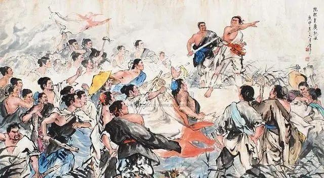 一是陈胜在大泽乡鼓动起义的人员本为在编秦军,与图中使用农具、木棍的“农民”形象并不吻合;