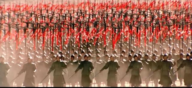 呈现出一种完全不可阻挡的军威浩荡——虽然这里存在一个bug,秦军是在秦王朝时期才崇尚黑色的,“衣服旄旌节旗皆上黑”,不过这只是艺术加工上的细节问题。