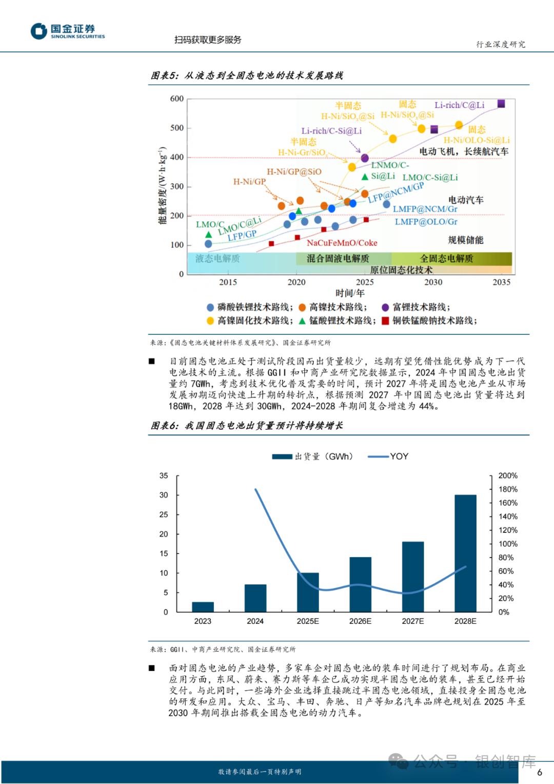 政策端 “中央定调 + 地方试点” 体系推动,2027 年被视为产业从初期迈向快速上升期的关键转折点;产业端车企与电池厂加速布局,2025-2030 年将迎来全固态电池装车与产能释放高峰,预计 2027 年中国固态电池出货量达 18GWh。