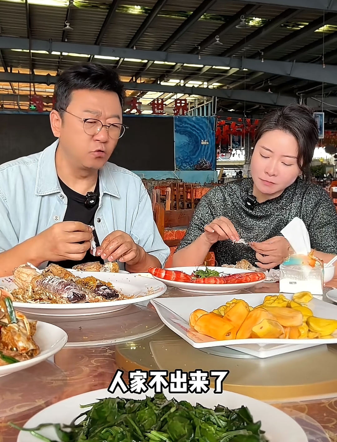 逛好之后,郭涛夫妇俩就带着买的新鲜海鲜去了可加工的饭店,买的海鲜加工完满满一大桌,非常丰盛。